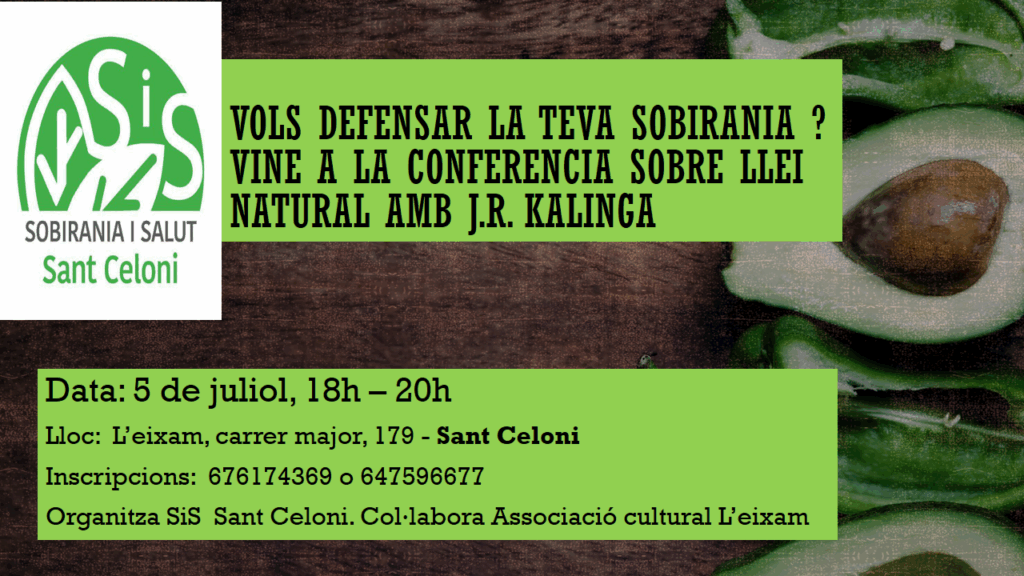 GRUPO SYS SANT CELONI – Conferencia Ley Natural – Julio 2025 26 de junio de 2025Acciones grupos, Agenda MensualSoberanía y Salud Inscripciones y Contacto: Tlf. 676174369 – 647596677